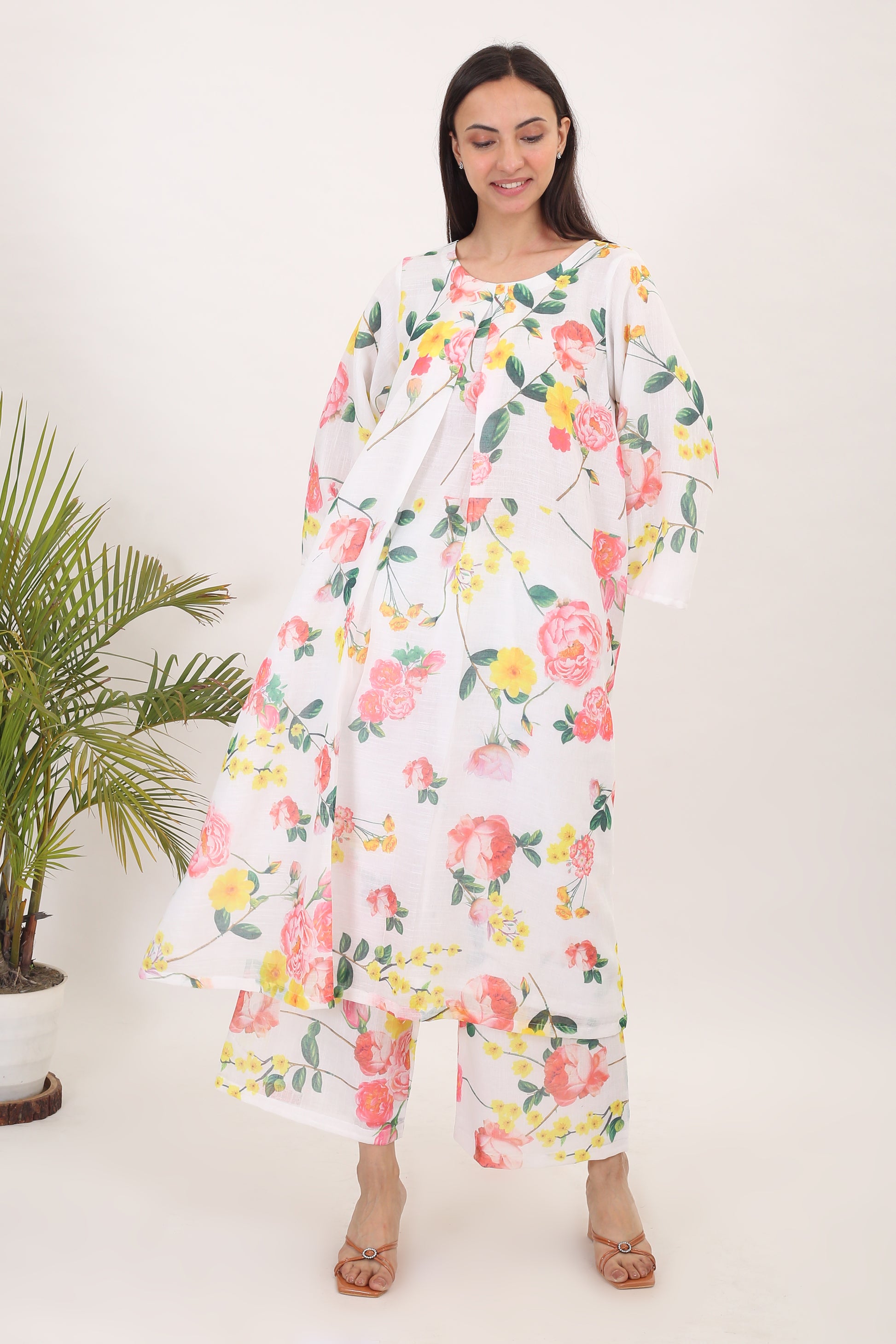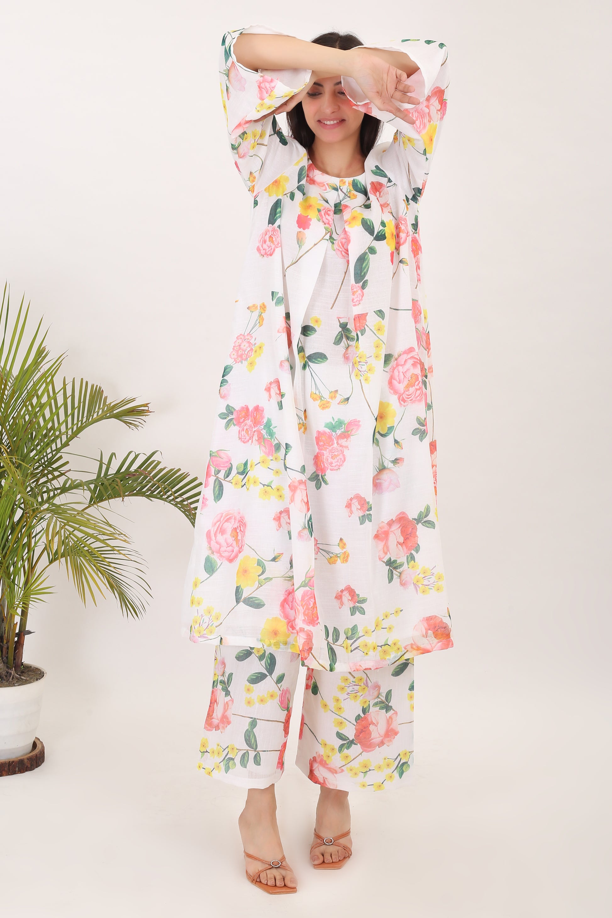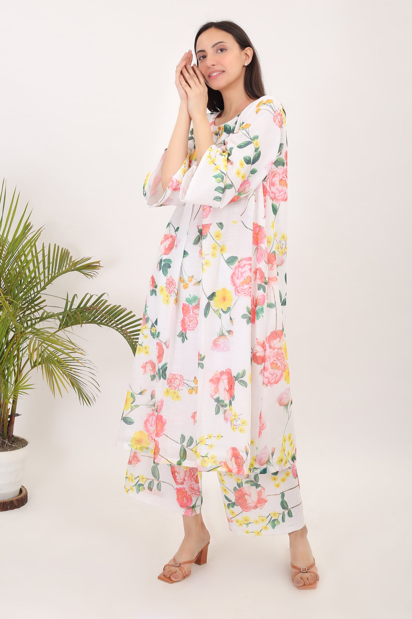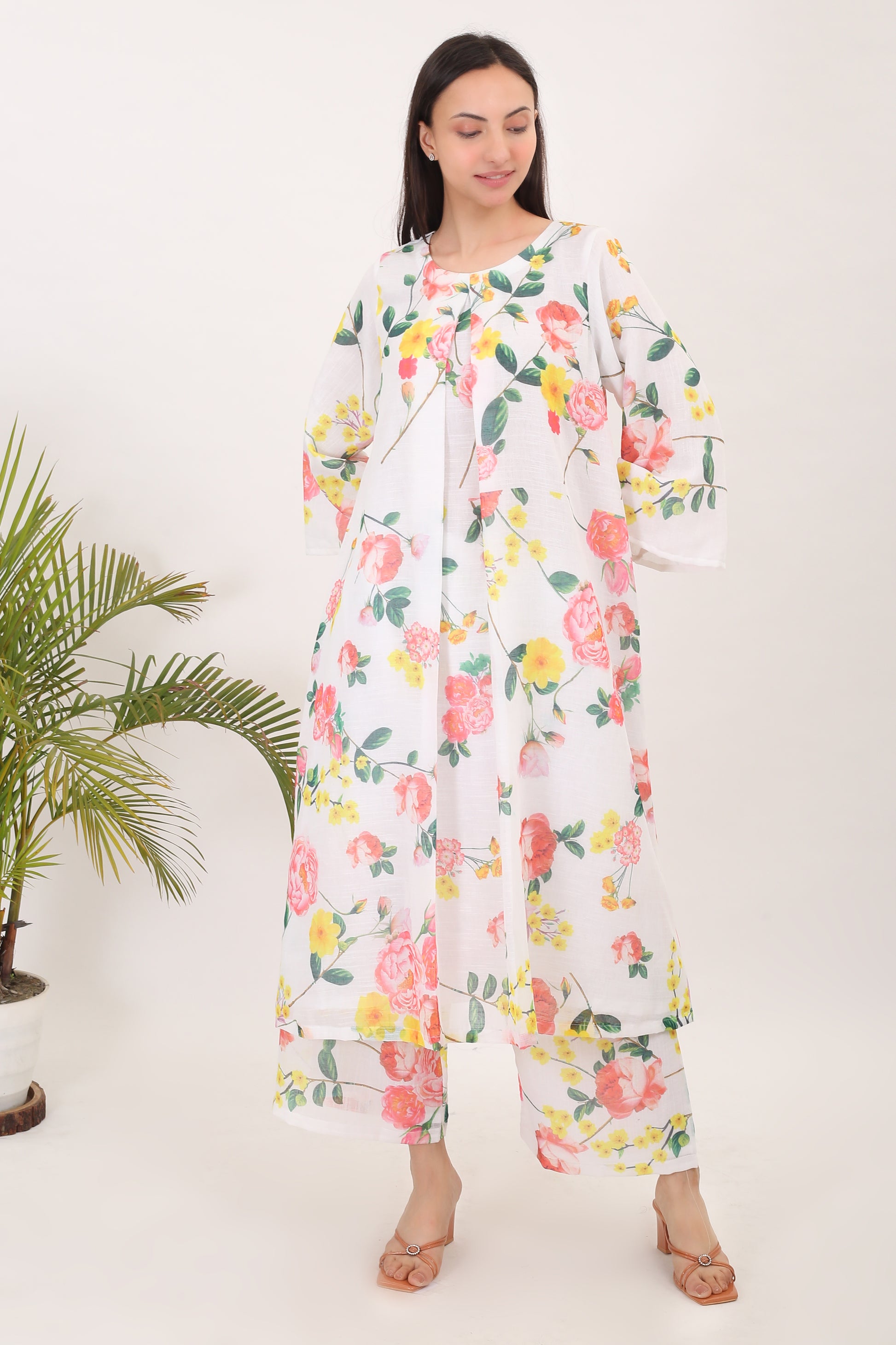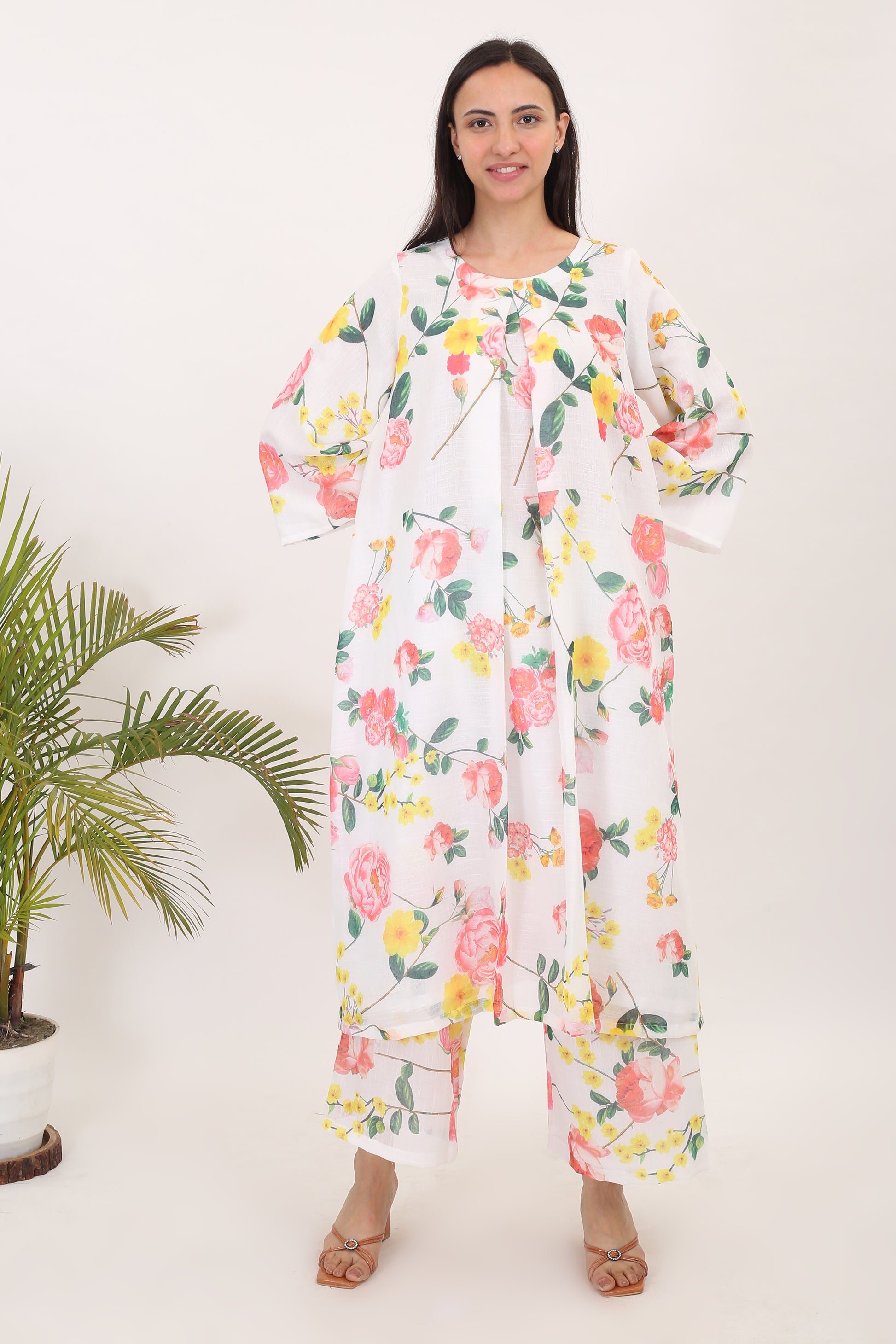 A WALK IN BLOOMS: Cotton linen printed women kurta set