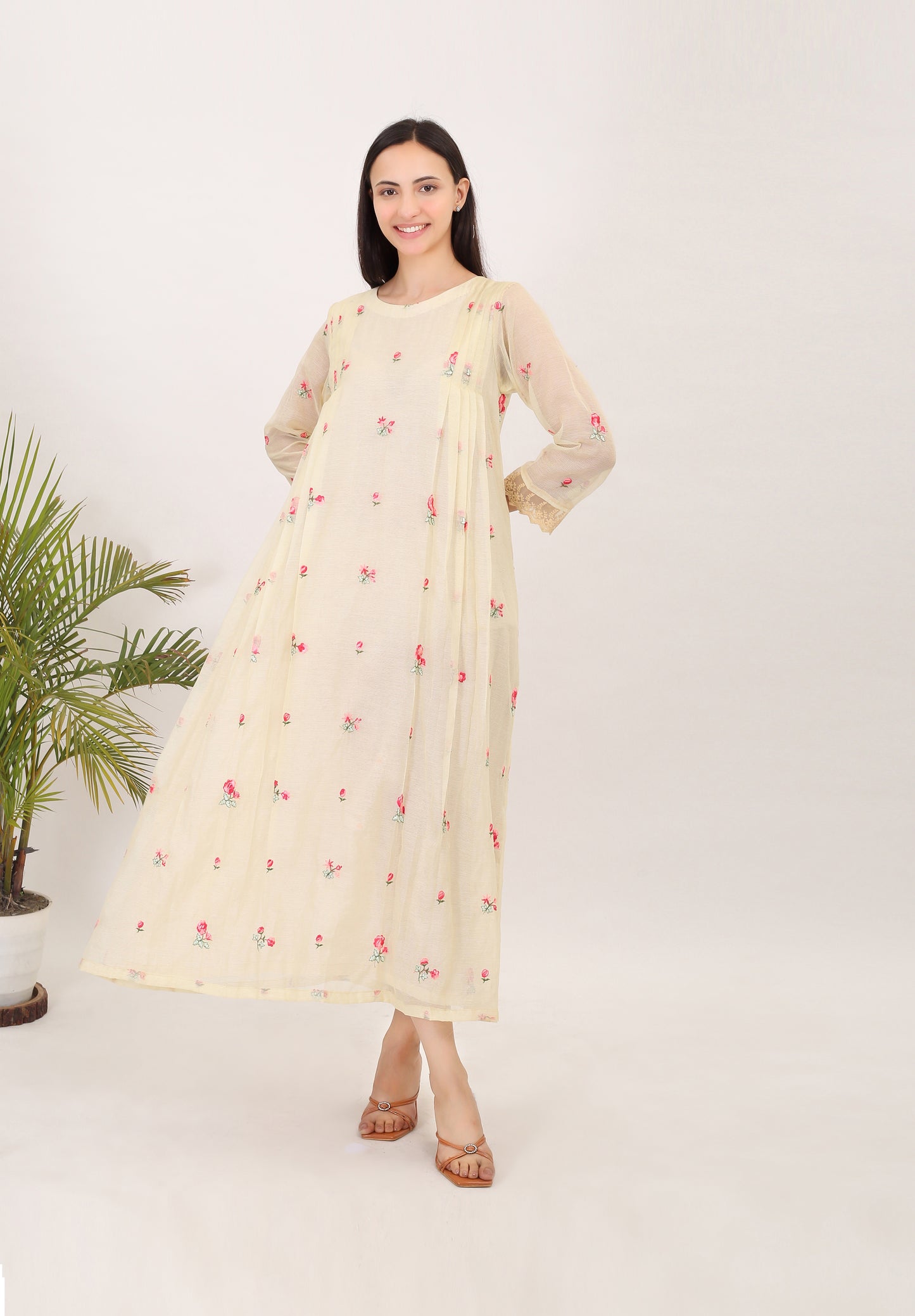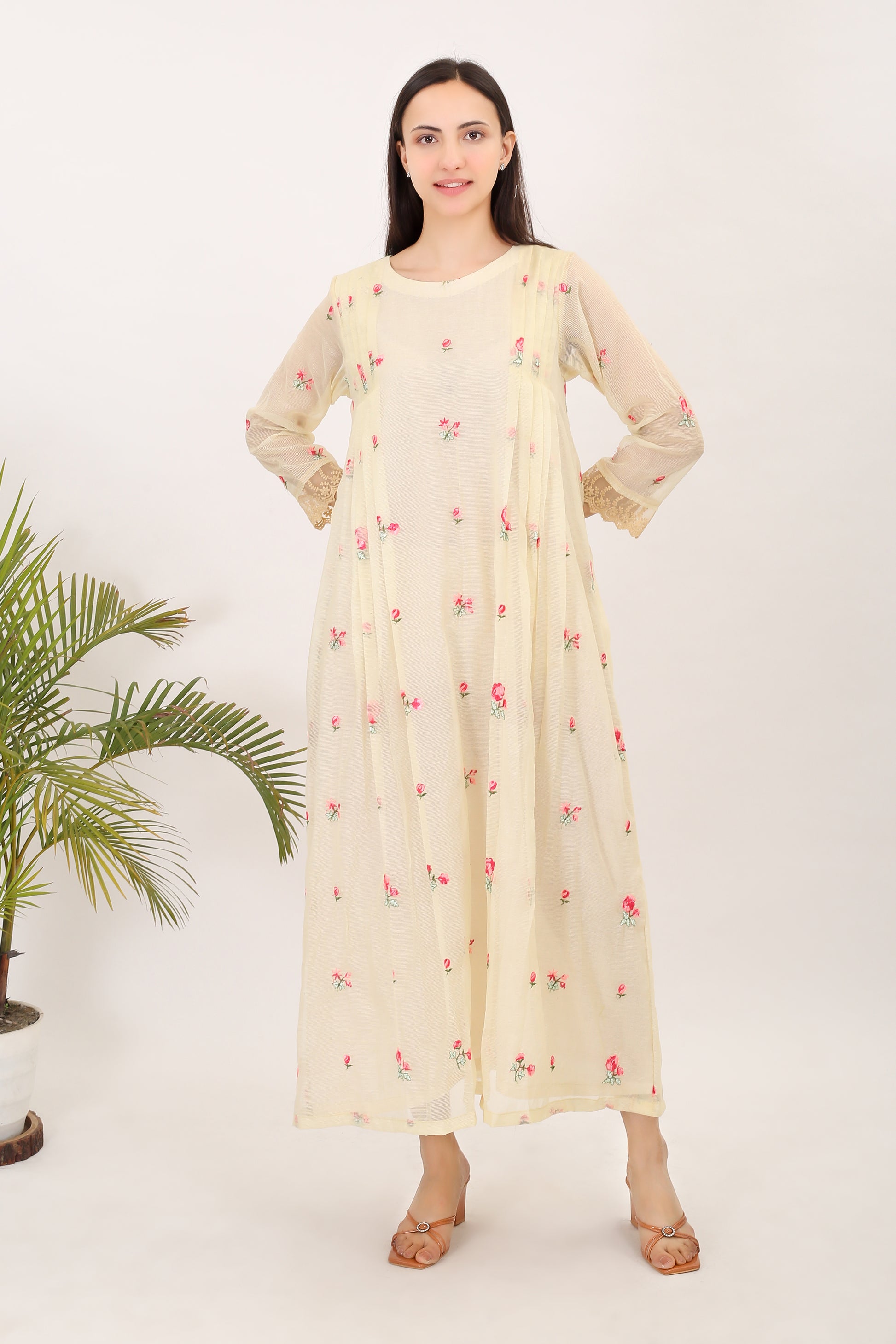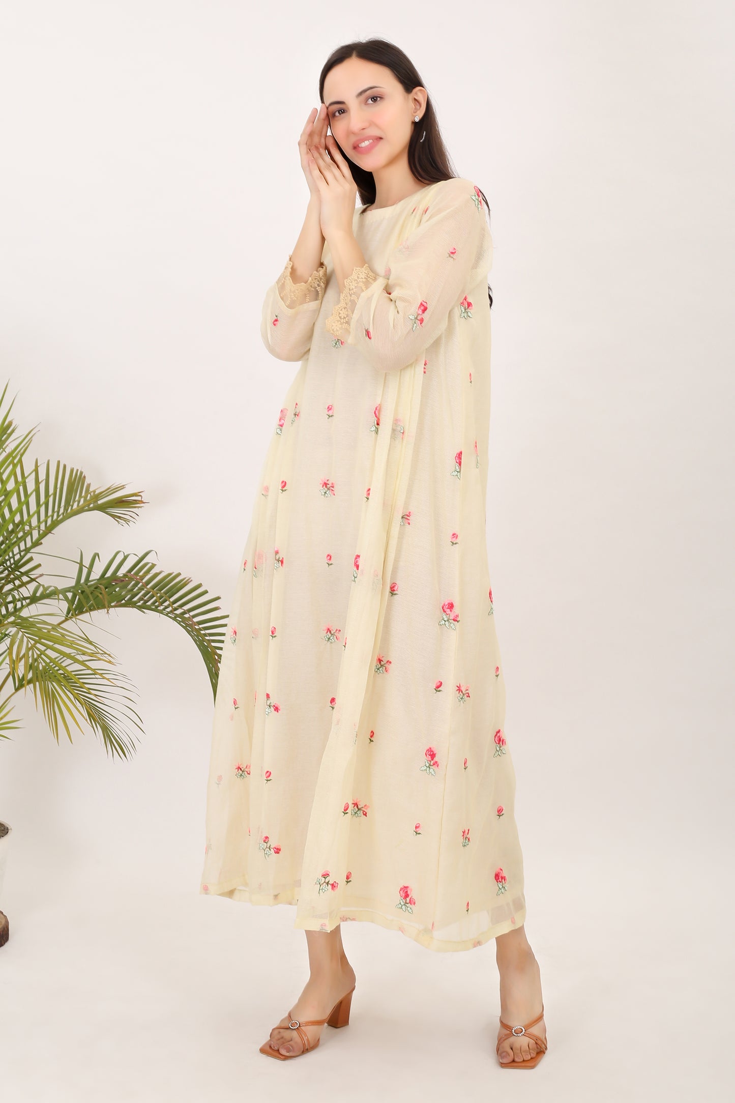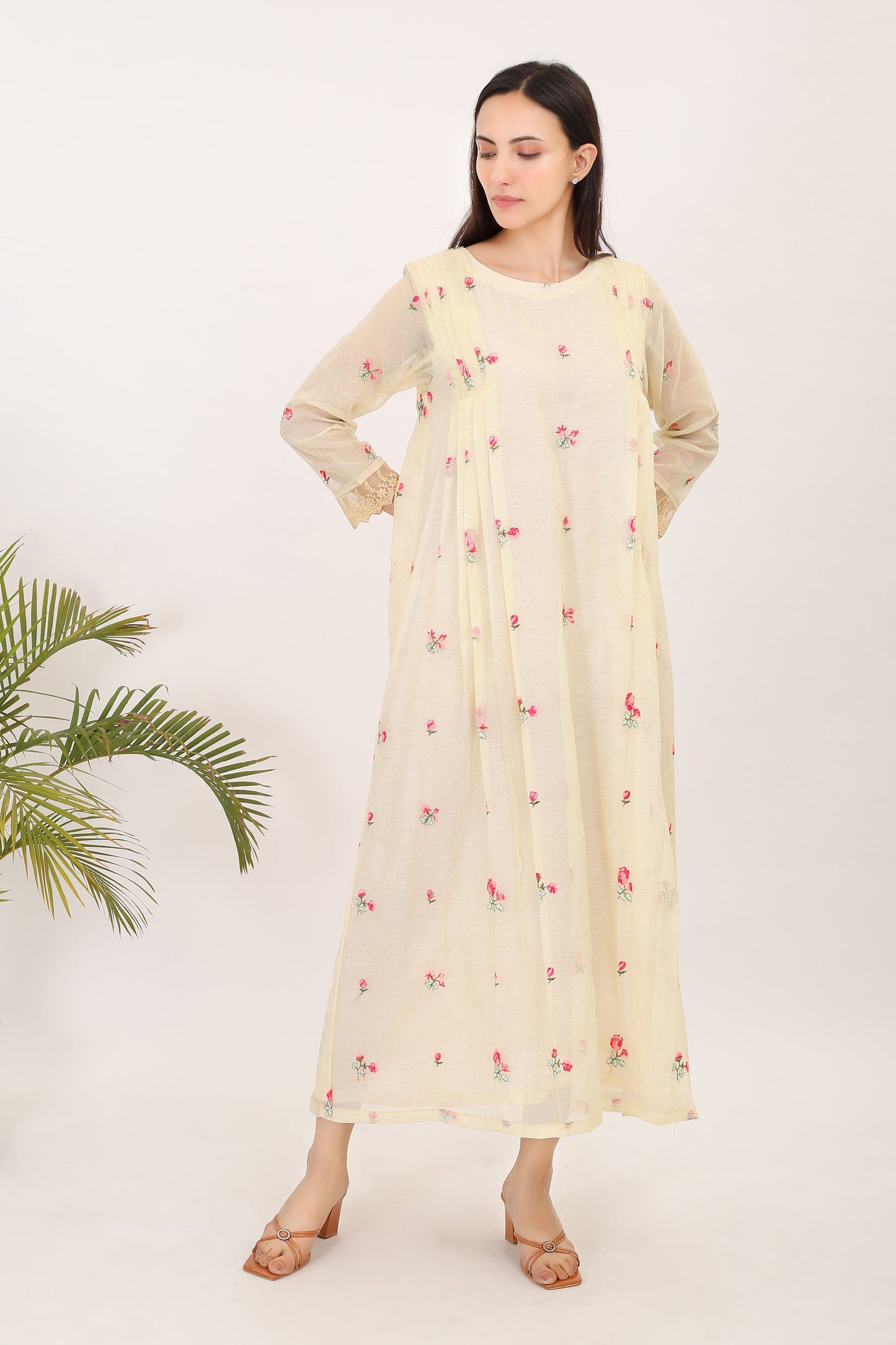 Echoes of Rosemary: Kota doria embroidered women angrakha kurta set
